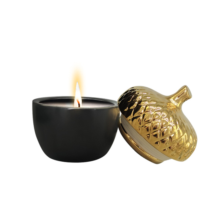 Wholesale autumn filbert acorn ceramic candle jar manufacturer
