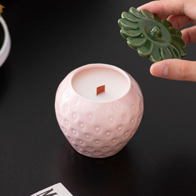 wholesale ceramic strawberry candle jars vessels red green