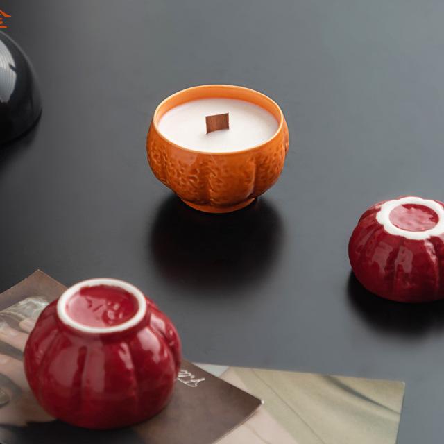 wholesale ceramic fruit lucky pumpkin candle jars vessels orange